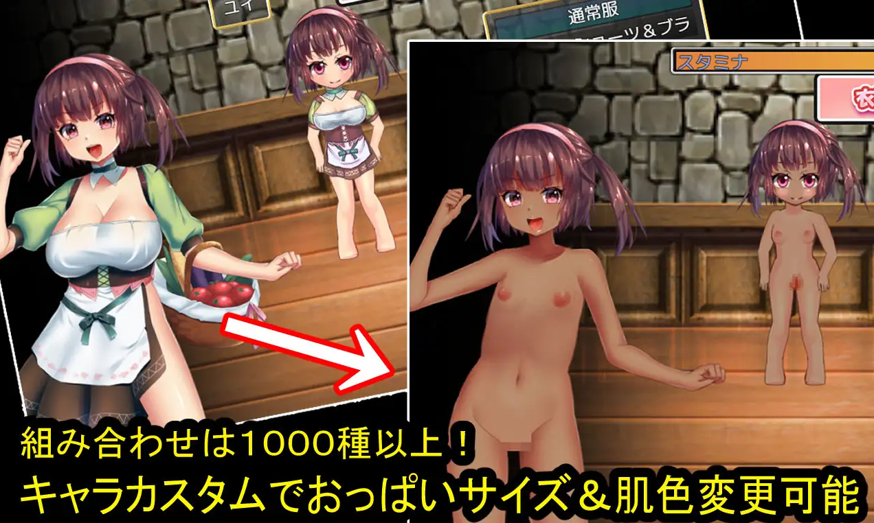 角色定制功能!超过 1000 种组合!您可以改变胸部大小和皮肤颜色!